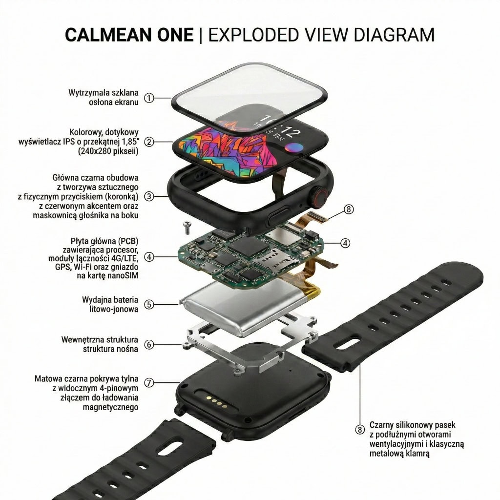- Smartwatch CALMEAN ONE – Wodoodporny smartwatch z funkcją GPS, rozmowami, czatem oraz przyciskiem SOS.