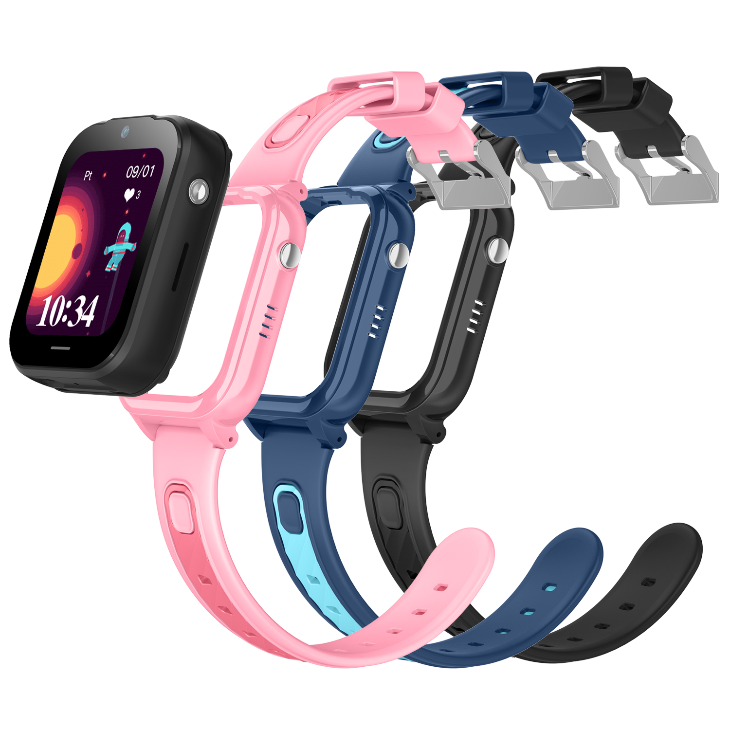 Wymienna obudowa CALMEAN VIDEO 2 pozwala korzystać z zegarka tradycyjnie na ręku lub w gumowym etui zawieszonym na szyi. Dzięki temu urządzenie zawsze pozostaje przy dziecku, jest chronione przed uszkodzeniami i dopasowuje się do każdej aktywności.